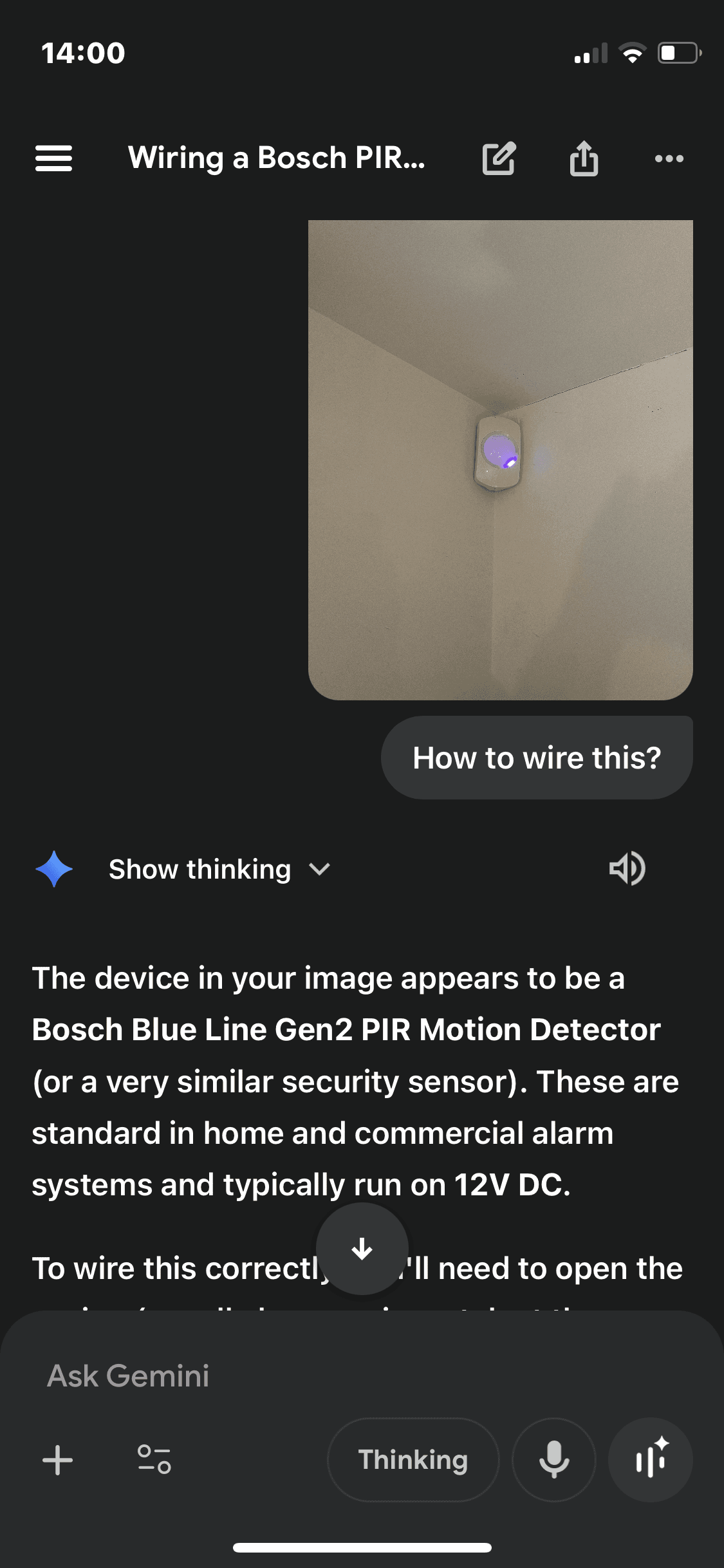 Google Gemini was equal worst, as it gave the completely wrong model (a Bosch PIR);
