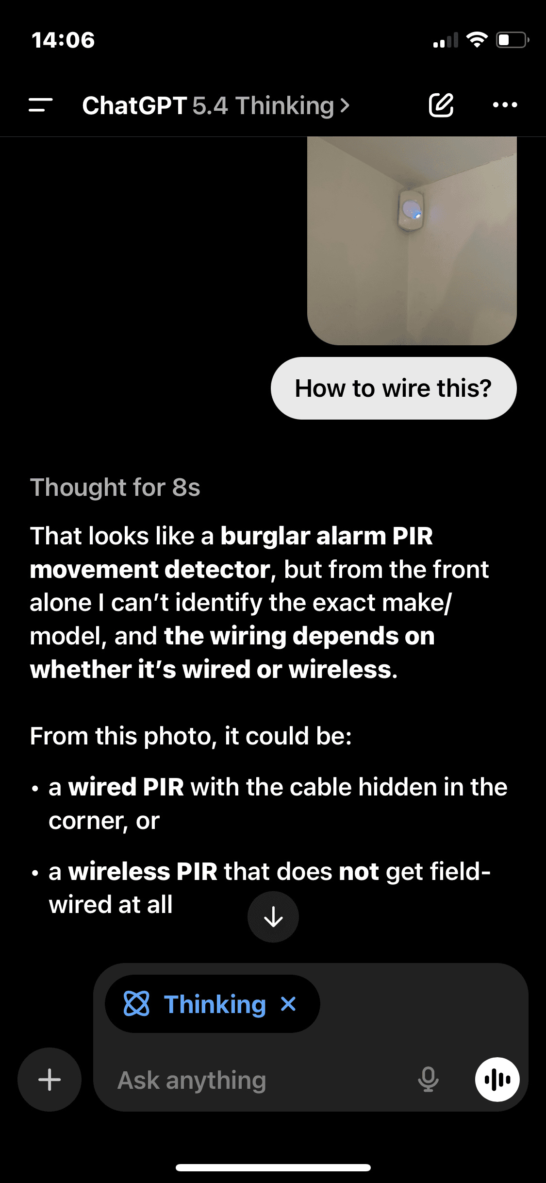 ChatGPT was worst, giving a very generic answer (i.e. saying it was a 'PIR sensor', but no model);
